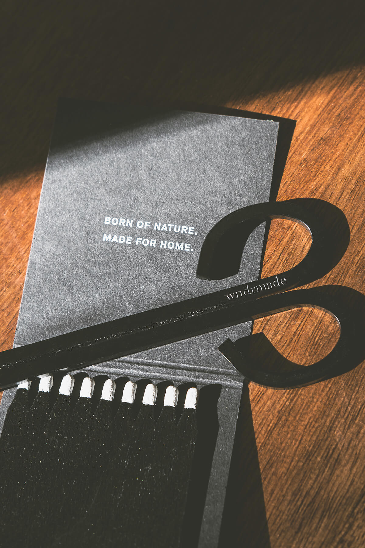 A set of 10 luxe black, three inch wood candle matches in a matte black paper fold with gold foil lettering. These high quality, easy strike matches ignite on the first try, and are the perfect length for Wndrmade candles.