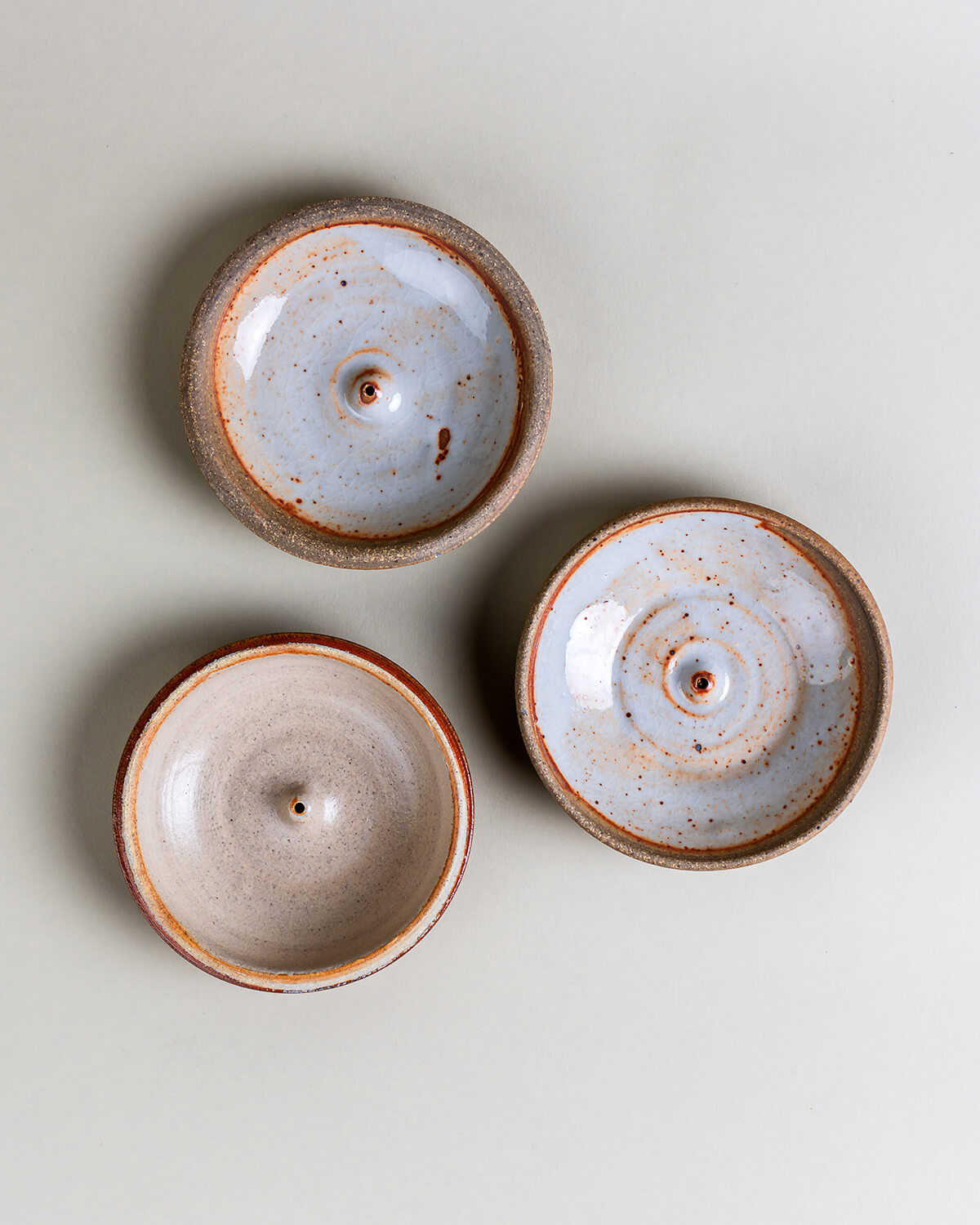 STONEWARE WOODFIRED HOLDER - Hand-thrown, northeast stoneware clay, wood-fired incense holder. Due to the nature that these are handmade, each holder will have natural variations that make them unique in their own way.