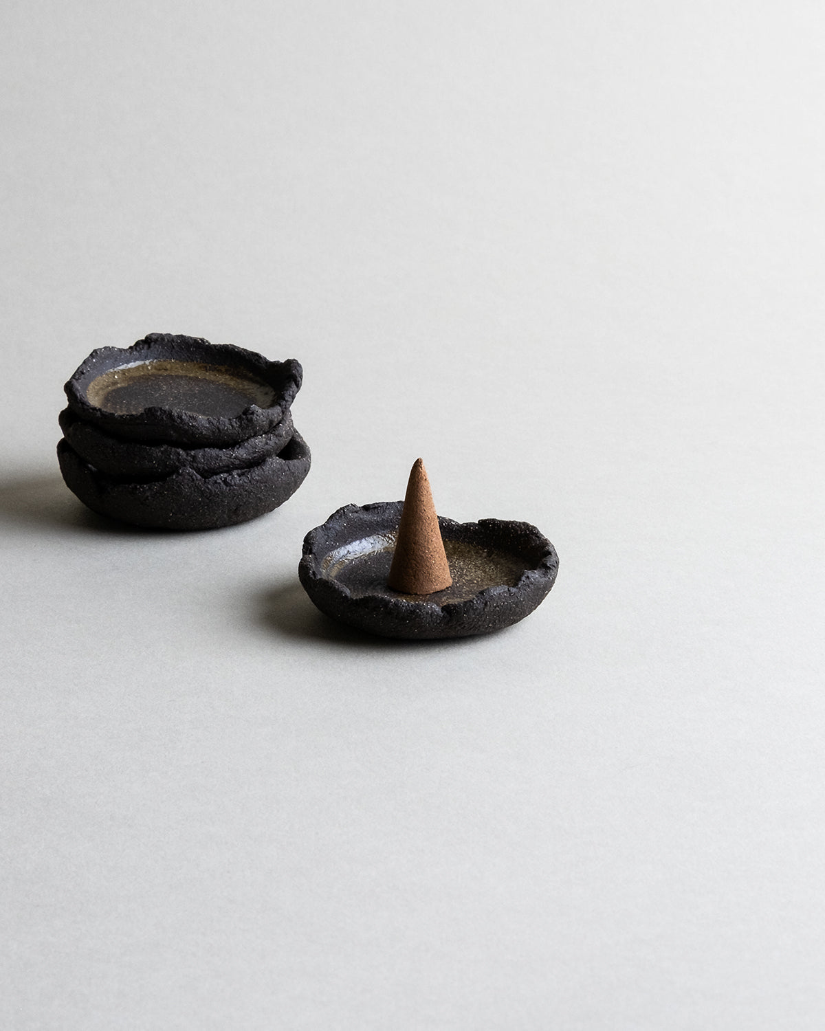 Our Stoneware Incense Pot is intended to be the perfect home for your incense cones. Built by hand with a very groggy, coarse dark brown stoneware clay, each piece is unique.